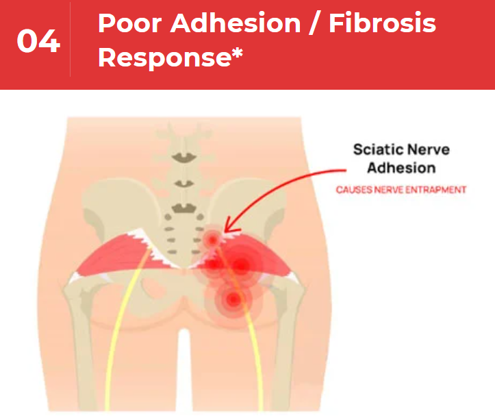 As the inflammation and muscle tension persist, your body tries to "protect" the nerve by wrapping it in scar tissue (fibrosis). Imagine a snake coiling around its prey, squeezing tighter and tighter. This fibrous tissue restricts the nerve's natural movement and flexibility, causing flare-ups from even the simplest movements — bending to pick something up, getting out of a chair, or just turning the wrong way in bed. This is why the pain keeps coming back, no matter what you do.