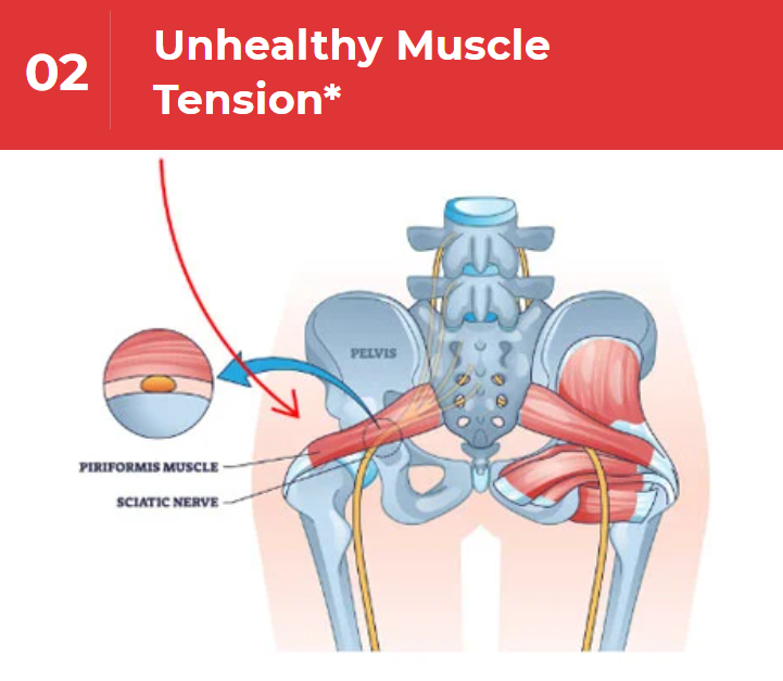 Oаt Strаw Extract + Chinese Skullcap work together to relax constricted muscles and release the vice-grip tension on your sciatic nerve, allowing you to bend, twist, and move freely again without wincing in pain.